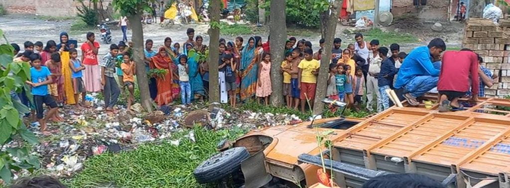 कांटी। मड़वन-कांटी रोड में शेरना के पास एक बाइक सवार तेज रफ्तार पिकअप की चपेट में आने से घायल हो गया। इस दौरान पिकअप अनियंत्रित होकर सड़क किनारे पानी भरे गड्ढ़े में घुस गई। पिकअप के साथ बाइक भी पानी में डूब गई।