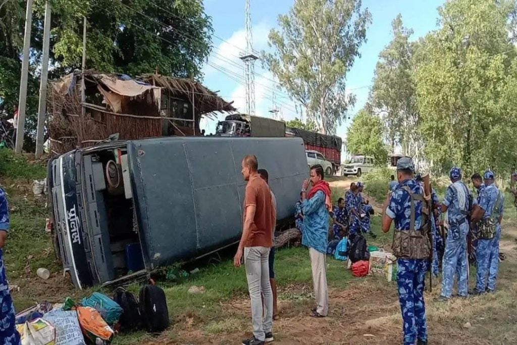 संवाद सहयोगी, जमुई। बिहार के मुख्यमंत्री नतीश कुमार जमुई आ रहे हैं। उनकी सुरक्षा व्यवस्था में मुजफ्फरपुर से बीएमपी जवानों को भी बुलाया गया है। मुजफ्फरपुर बीएमपी (छह) के जवानों से भरी पुलिस बस रविवार की सुबह मलयपुर थाना क्षेत्र के पावरग्रिड के समीप अनियंत्रित होकर सड़क किनारे 10 फिट गड्ढे में पलट गई।इस हादसे में 10 जवान जख्मी हो गए, दो गंभीर रूप से जख्मी हुए हैं।