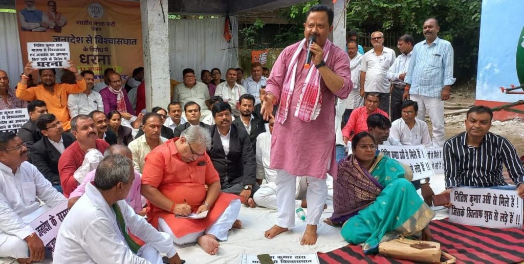 प्रदेश महामंत्री ने कहा कि गठबंधन तोड़ने के बाद नीतीश कुमार की पार्टी जदयू ने राजद, कांग्रेस समेत 7 पार्टियों के साथ महागठबंधन कर बिहार में नई सरकार बनाई है। उन्होंने गठबंधन तोड़कर विश्वासघात का काम किया है। हमारे कार्यकर्ता काफी खुश हैं। पॉजिटिव ऊर्जा से ओतप्रोत हैं। हमारे शीर्ष नेताओं द्वारा उन्हें बार-बार आश्वासन दिया गया की वे 2025 तक बिहार के मुख्यमंत्री रहेंगे। बावजूद इसके उन्होंने धोखा दिया। बिहार की जनता उन्हें सबक सिखाएगी।