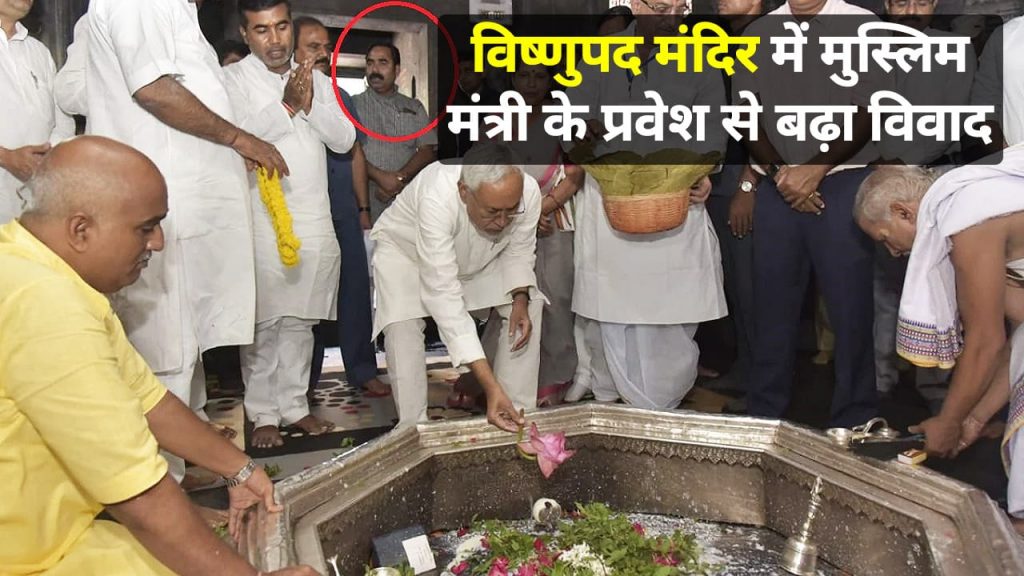 मुजफ्फरपुर में बुधवार को मुख्यमंत्री नीतीश कुमार व बिहार सरकार के सूचना एवं प्रौद्योगिकी मंत्री मो इसराइल मंसूरी के खिलाफ परिवाद दायर किया गया। दरअसल, गया के विष्णु पद मंदिर में पूजा करने के दौरान मुख्यमंत्री नीतीश कुमार अपने साथ बिहार सरकार के सूचना एवं प्रौद्योगिकी मंत्री मो इसराइल मंसूरी को भी अपने साथ ले गए थे। जबकि गया के विश्व प्रसिद्ध विष्णुपद मंदिर के मुख्य द्वार पर अहिंदू प्रवेश वर्जित लिखा हुआ है। लेकिन नीतीश कुमार अपने साथ मुस्लिम नेता को साथ लेकर चले गए।