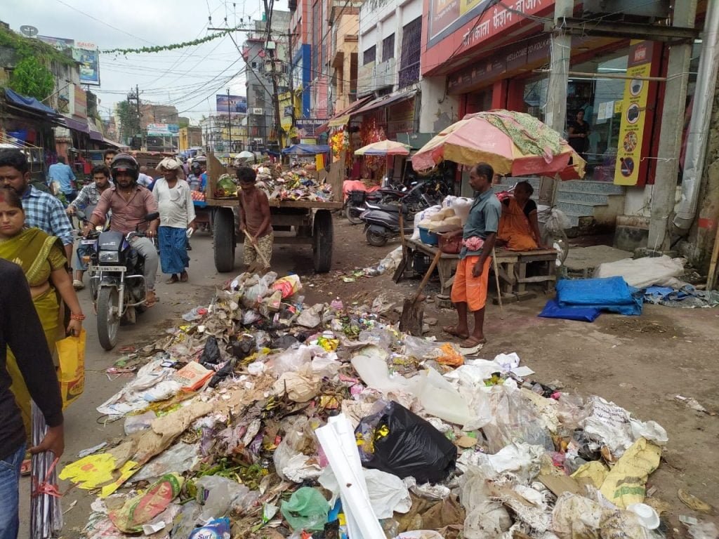 नगर निगमके कर्मियों की हड़ताल के कारण शहर सफाई व्यवस्था पूरी तरह से चरमरा गई है। गलियाें में ताे कचरे का अंबार लगा ही है। मुख्य मार्गाें से भी कूड़े नहीं उठ रहे हैं। क्लब राेड, आमगाेला, सरैयागंज, तिलक मैदान राेड समेत सभी सड़कों पर गंदगी का ढेर लगा है।