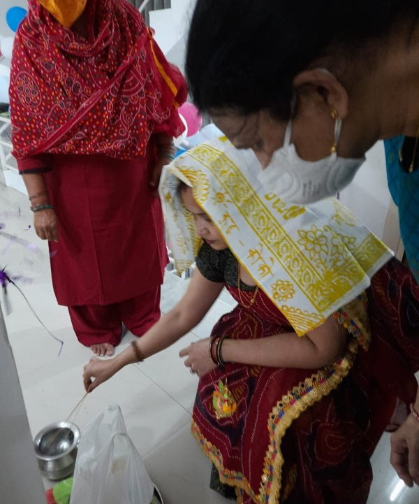 गुजरात पुलिस में अपनी सेवा दे रही आईपीएस अधिकारी और राजस्थान की बेटी सरोज कुमारी के घर इस समय खुशियों का माहौल है. अक्सर वर्दी में सभी को दिखने वाली यह आईपीएस बच्चों के जन्म के मौके पर अपनी ग्रामीण पृष्ठभूमि को नहीं भूलीं है. वह बच्चों को जन्म देने के बाद अपनी पारंपरिक ग्रामीण महिलाओं की वेशभूषा लहंगा चूनरी में नजर आई हैं.