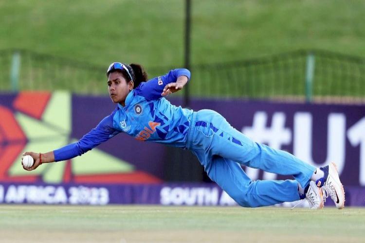 पार्थवी चोपड़ा के 12वी ओवर में पहली गेंद पर अर्चना के एक शानदार कैच ने सभी क्रिकेट प्रेमियों का दिल जीत लिया स्केच को देखकर सभी लोग तारीफ करने में जुट गया इनका वीडियो क्लिप सोशल मीडिया पर तेजी से वायरल हो रहा है।