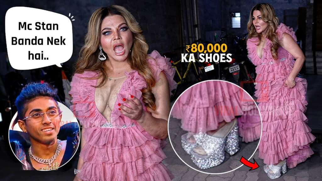 फिर राखी कहती हैं- वो अपना कौन स्टैंड है? एमसी स्टैंड… जूते देखो। मेरे तुम्हारे। 80 हजार के। एक जैसे दाम। एमसी स्टैंड की तरह। हालांकि बाद में उनको बताया जाता है कि वह स्टैन है न कि स्टैंड। फिर राखी कहती हैं- कोई भी स्टैंड हो। बंदा बढ़िया है।