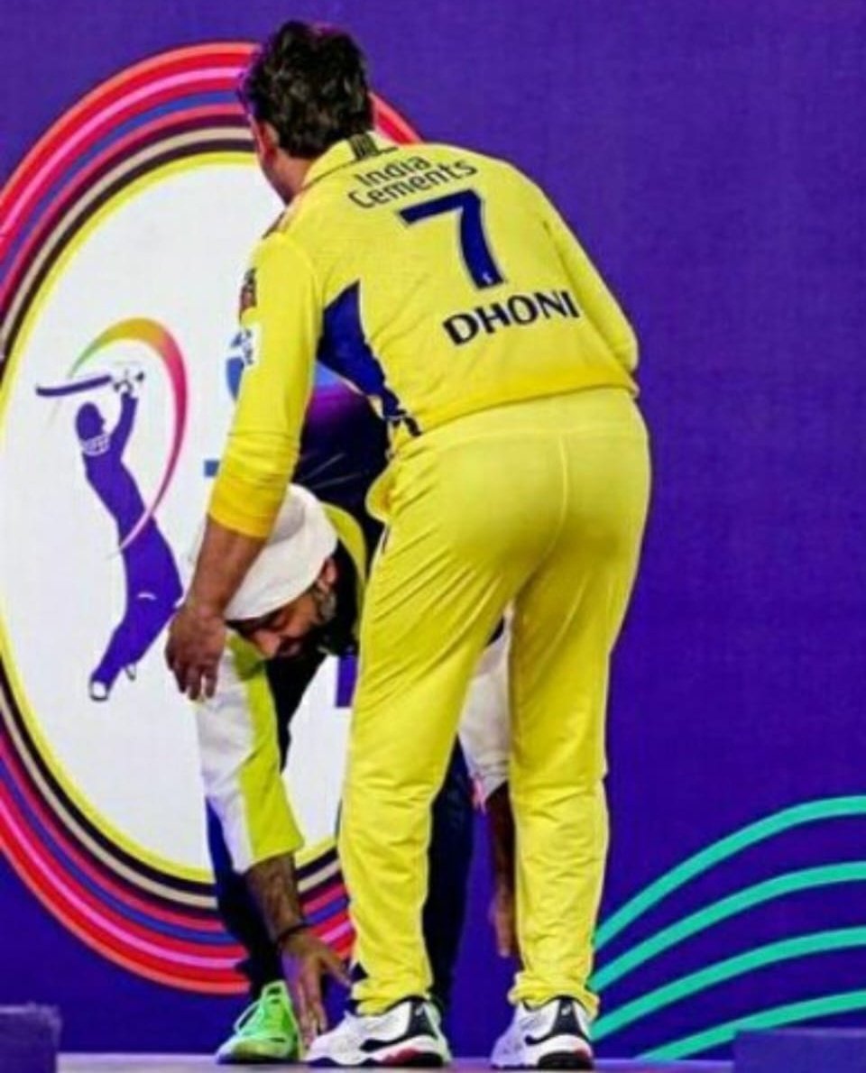 सबकी परफॉर्मेंस होने के बाद अरिजीत सिंह, रश्मिका मंदाना और तमन्ना भाटिया के साथ होस्ट मंदिरा बेदी स्टेज पर थे। जैसे ही धोनी मंच पर आए, अरिजीत ने उनके पैर छू लिए। इस एक मोमेंट ने सबका दिल जीत लिया।
