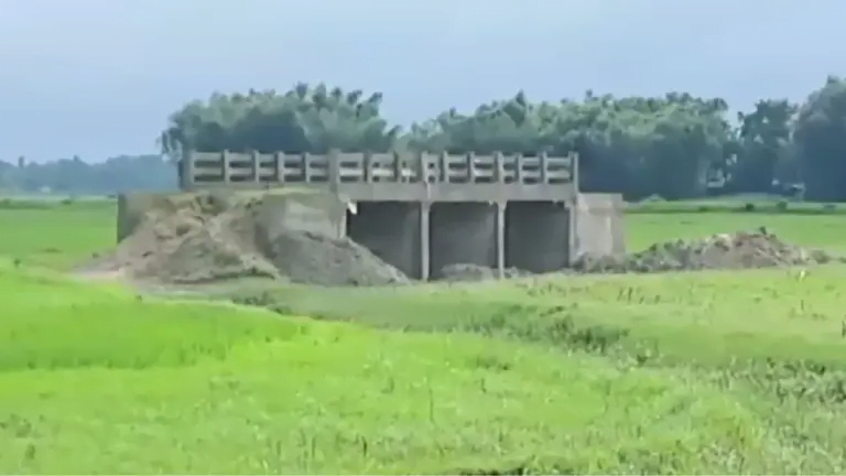 बिहार के अररिया जिले के रानीगंज ब्लॉक स्थित परमानंदपुर गांव का है. यहां एक किसान के खेत के अंदर 6 महीने पहले पुल बना दिया गया है. यह पुल किस योजना के तहत बना है ये पूरी तरह साफ नहीं है. इसका बोर्ड भी पुल के पास नहीं लगाया गया है.