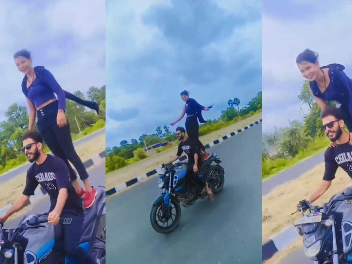 बिहार में बाइक पर स्टंट को गैरकानूनी घोषित कर दिया गया है। लेकिन इसका सिलसिला थम नहीं रहा। लड़कों के साथ साथ लड़कियां भी इस काम में पीछे नहीं है। मुजफ्फरपुर में हाइवे पर बॉयफ्रेंड के साथ बाइक पर खतरनाक स्टंट करते हुए युवती का वीडियो रील्स सोशल मीडिया पर वायरल हुआ है। युवती ने रील्स बनाकर अपने सोशल अकाउंट पर पोस्ट किया है। वीडियो के बैक ग्राउंड में गाना चल रहा है। युवती का बॉयफ्रेंड बाइक चला रहा है और वह खुद पीछे चलती बाइक पर खड़ी होकर डांस करते दिख रही है। दूसरे वीडियो में युवती हाथ छोड़कर बाइक चलाते हुए दिख रही और बैक ग्राउंड में गाना चल रहा है। हालांकि वायरल वीडियो की सत्यता की पुष्टि लाइव Muzaffarpur Wow नहीं करता है।