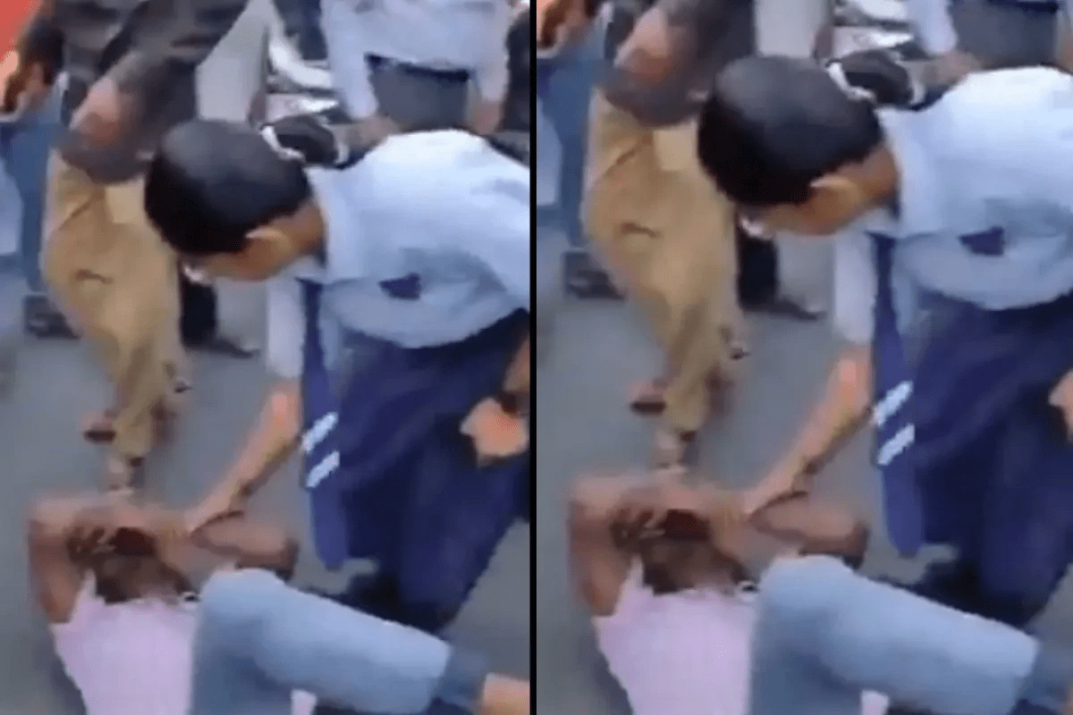 इस वीडियो को Chaser नाम के एक्स अकाउंट से शेयर किया गया है. वीडियो में देखा जा सकता है कि, बीच रोड पर एक लड़का लेटा हुआ है. वहीं, एक स्कूली लड़की बुरी तरह से बेल्ट ही बेल्ट इस लड़के के मुंह पर मार रही हैं. वीडियो के बैकग्राउंड से आवाज आ रही है, जिसमें वह काफी भला बुरा इस लड़के को बोल रही है, जिससे पता चलता है कि, इस लड़के ने लड़कियों के साथ गंदी हरकत की है, जिसकी वजह से यह बीच सड़क पर पिट रहा है. लड़के ने अपना मुंह छिपाए हुआ है. इस दौरान आस-पास काफी भीड़ मौजूद है और इस लड़के का वीडियो बना रही है.