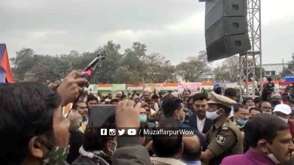 मुख्यमंत्री नीतीश कुमार की सभा में जमकर हंगामा हो गया। नीतीश समाज आधार अभियान के तहत मुजफ्फरपुर के MIT कॉलेज में जीविका दीदी को संबोधित कर रहे थे, तभी मंच के बगल में कुछ दूरी पर जनप्रतिनिधियों के दो गुट आपस मे भिड़ गए। एक जनप्रतिनिधि मंच पर जाकर CM को ज्ञापन देना चाह रहे थे। उन्हें सुरक्षाबलों ने रोक दिया, तो वह CM से मिलने की जिद पर अड़ गए और सुरक्षाकर्मियों से विवाद करने लगे। बैरिकेडिंग से जबरन निकलने का प्रयास करने लगे।