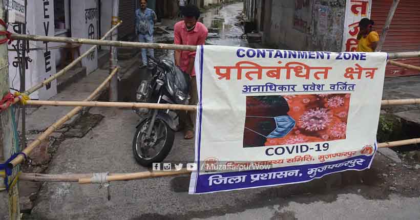 मुजफ्फरपुर जिले में कोरोना के तेजी से बढ़ते हुए मामले को देखते हुए शीघ्र ही कंटेनमेंट जोन बनाने की आवश्यकता पड़ेगी। स्वास्थ्य विभाग ने इसकी तैयारी भी शुरू कर दी है। हालांकि, अब तक मुख्यालय या सरकार की तरफ से इसे लेकर कोई गाइडलाइन नहीं मिला है। फिर भी सिविल सर्जन डॉ. विनय शर्मा ने बताया कि जहां पर 20 या इससे अधिक कोरोना पॉजिटिव मरीज मिलेंगे।