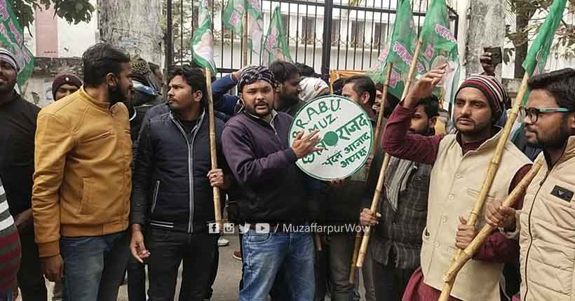 मुजफ्फरपुर के बीआरएबीयू विश्वविद्यालय में आयोजित सिंडिकेट बैठक के खिलाफ छात्र राजद द्वारा जमकर विरोध प्रदर्शन किया गया। इस दौरान प्रदर्शन कर रहे छात्रों ने डफली बजाकर जमकर नारेबाजी भी की।
