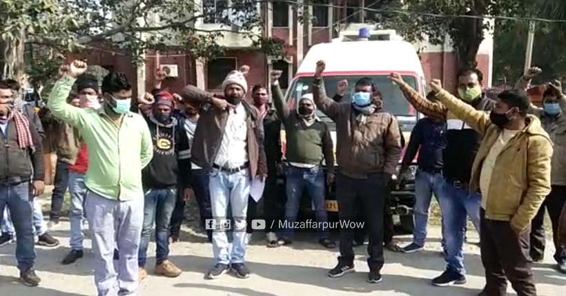 मुजफ्फरपुर सदर अस्पताल में कार्य से हटाए जाने के विरोध में एमबुलेंस चालकों ने शुक्रवार को कामकाज ठप कर प्रदर्शन किया। जिन पांच कर्मियों को सेवा से हटाया गया है। उनकी वापसी की मांग की। इसके बाद सिविल सर्जन डॉ. विनय शर्मा और DPM को सात सूत्री मांगों को लेकर ज्ञापन सौंपा।