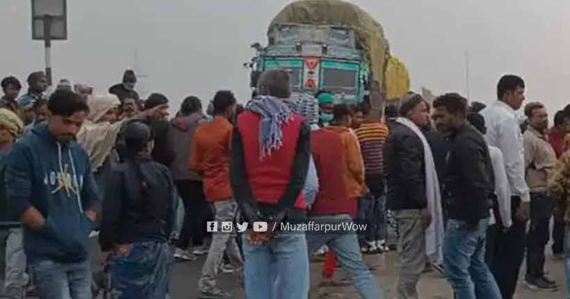 मुजफ्फरपुर जिले में रफ्तार का कहर थमने का नाम नहीं ले रहा है। जिले के कांटी थाना क्षेत्र के सदातपुर में एक ट्रक ने बाइक सवार को ठोकर मार दी है। घटना के बाद ट्रक चालक गाड़ी लेकर फरार हो गया। वही, बाइक सवार की घटनास्थल पर ही दर्दनाक मौत हो गई। घटना के बाद स्थानीय लोगो की मौके पर भाड़ी भीड़ जुट गई। मौके पर जुटे लोगो ने कुछ देर के लिए मौके पर हंगामा शुरू कर दिया।