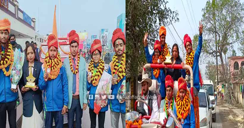 मुजफ्फरपुर लौटते ही सभी खिलाड़ियों को फुल माला और बुके देकर जोरदार स्वागत किया गया। इन सभी खिलाड़ियों को स्वागत करने खुद राज्य सवात् संघ, बिहार के अध्यक्ष IAS चंद्रमोहन प्रसाद सिंह, कोषाध्यक्ष शिल्पी सोनम, कोच बबली सिंह, सुरज पंडित, एथलीट कमीशन के चेयरमैन नितेश कुमार, कैप्टन आदित्य समेत रास वर्ल्ड मार्शल आर्ट के सभी खिलाड़ी व अभिभावक मुजफ्फरपुर जंक्शन पर पहुंचकर स्वागत किया।इस दौरान समर्थकों ने भारत माता की जय का नारे भी लगाया गया।