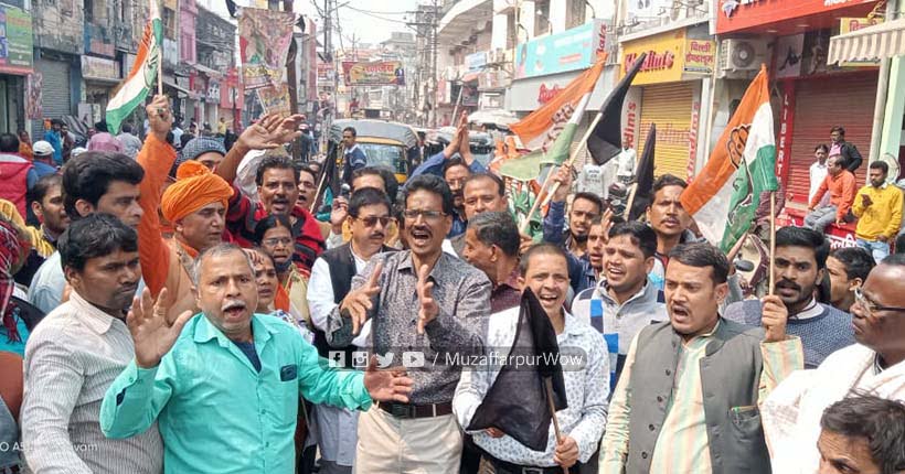 मुजफ्फरपुर। शहर बंद के समर्थन में राजद जिलाध्यक्ष रमेश गुप्ता के नेतृत्व में कार्यकर्ताओं ने जुलूस निकला। इस दौरान राज्य सरकार के खिलाफ नारेबाजी की। आपराधिक घटनाओं पर अविलंब लगाम लगाने की मांग की।