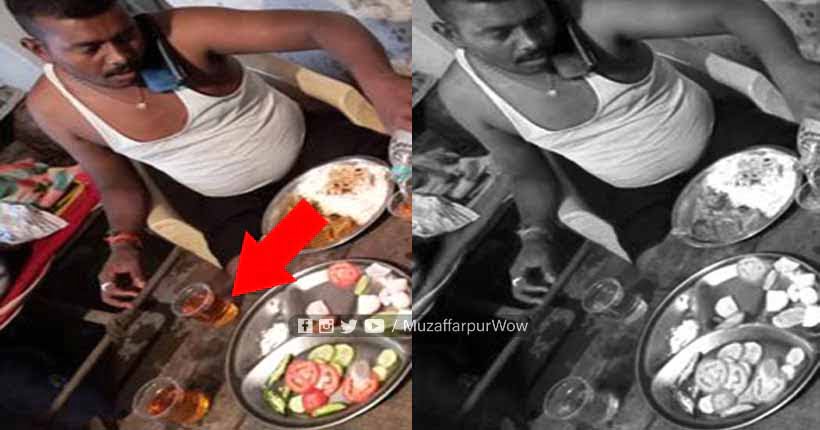 मिली जानकारी के अनुसार वायरल फोटो में जो शख्स दिख रहा है वो सिमरी बख्तियारपुर थाने में तैनात चौकीदार सुलेन्द्र पासवान है। फोटो में साफ नजर आ रहा है कि वह थाली में सलाद के साथ मीट और चावल लेकर कुर्सी पर बैठा है और थाली के ठीक पास में तीन डिस्पोजल गिलास भी रखा हुआ है जिसमें दो में शराब डाली गयी है और तीसरे में शराब की बोतल से गिलास में वह शराब डाल रहा है। शराब में बिसलेरी का पानी मिला रहा है। वही वह फोन पर भी किसी से बात करता नजर आ रहा है।